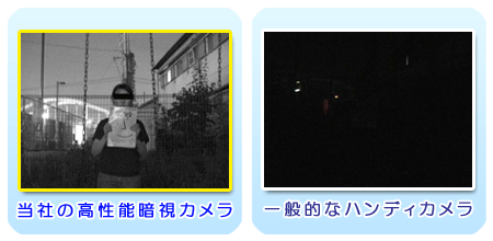 ※ハンデイカムのナイトショットモードを暗視カメラと呼ぶ探偵社も多いのでご注意下さい。弊社では、CCD素子自体が高感度なカメラを使用しております。